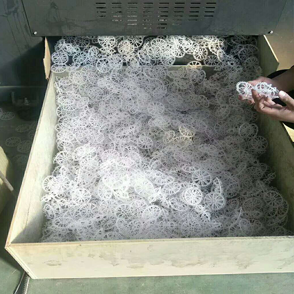 pp生物填料是在(zài)軟性填料和半軟性填(tián)料的基礎上(shàng)發展而成的,它兼有(yǒu)兩者的優點。其結構是將塑料圓片壓扣改成雙圈大塑料(liào)環,將醛化纖維或滌綸絲壓在環(huán)的環(huán)圈上,使(shǐ)纖維束均勻分布;內圈是雪花狀(zhuàng)塑料枝條,既(jì)能掛膜,又能有效切割氣泡,提高氧的轉移(yí)速率和利用率。使水氣生物膜得到充分(fèn)交換,使水中的有機物得到高效處理。pp填料是以PP為(wéi)主要原料製作的一種生物填(tián)料(liào),具有生(shēng)物親和性,如有做改性(xìng)處理,易掛膜。常常加工成階梯環形填料,用於汙水處理或者工廠化養殖的MBBR環節中。