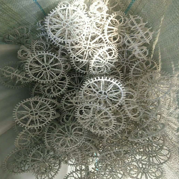 pp規整填料是在軟性填料和(hé)半(bàn)軟性填料的基礎上發展而成(chéng)的,它兼有兩者的優點。其結構是將塑料圓片壓扣改成雙圈大塑料環,將醛化纖維或(huò)滌綸絲壓在環的環圈上(shàng),使纖維束均勻分布;內圈是(shì)雪花狀(zhuàng)塑料枝條,既能掛膜,又能有效切割氣泡,提高氧的轉移速率和利用率。使水氣生物膜得到充分交換,使水中的有機物得到高效處(chù)理。無毒、無味,密度小,強度、剛度、硬度耐熱性均優於低壓聚乙烯,可在(zài)100℃左右使用。